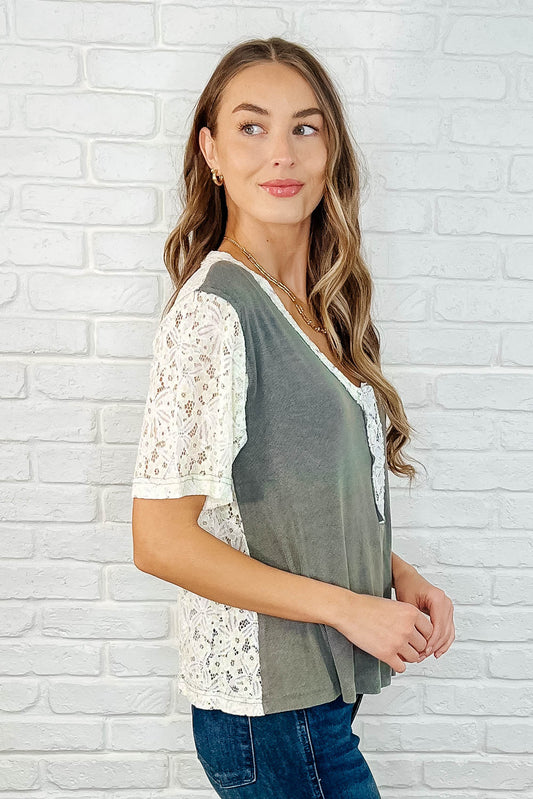 When the Sun Goes Down Mineral Wash Ribbed Knit Top in Vintage Denim