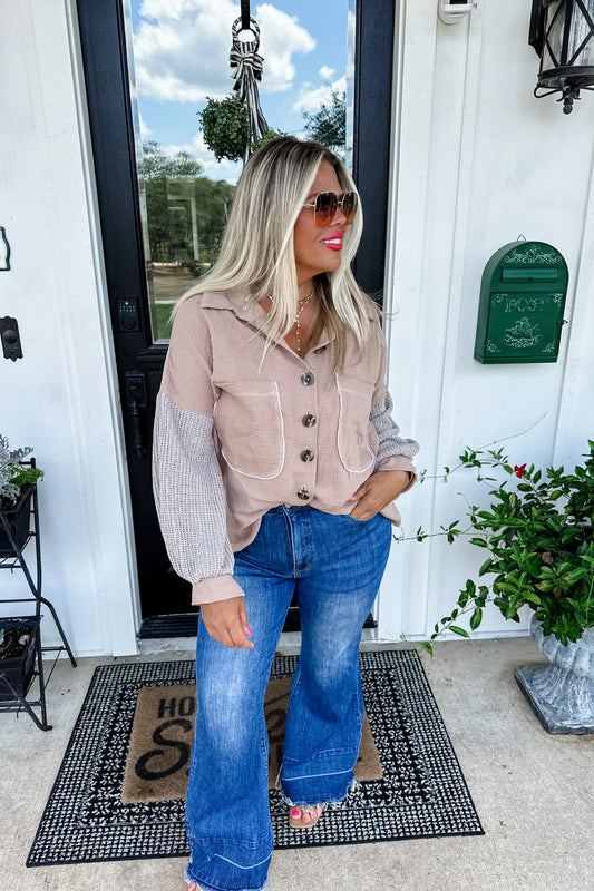 Fleeced French Terry Oversized Jacket, Light MochaRegular price $59.99 USDRegular priceUnit price / per-