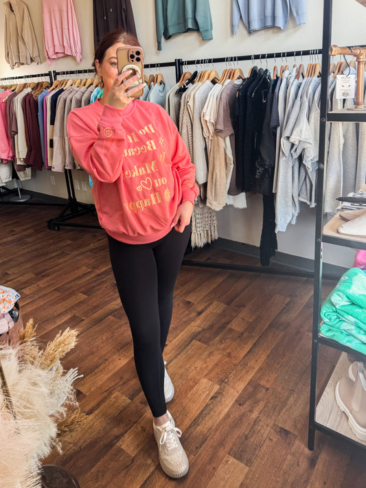 Embroidered Do It Because It Makes You Happy Sweatshirt, Light Gold on PinkRegular price $54.00 USDRegular priceUnit price / per-