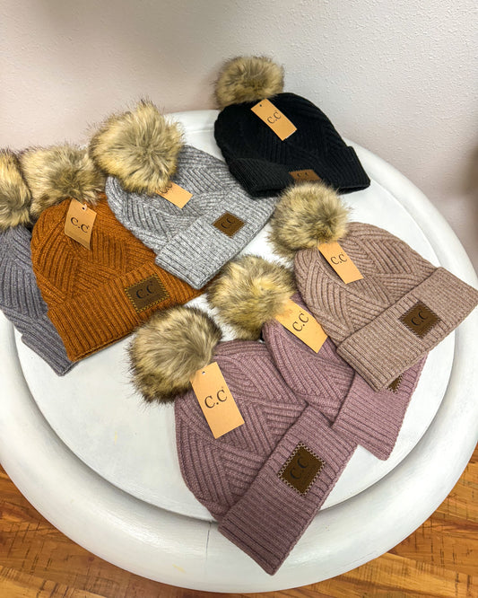 C.C Exclusives Pom Knit Beanie Hat, 6 colorsRegular price $22.00 USDRegular priceUnit price / per-