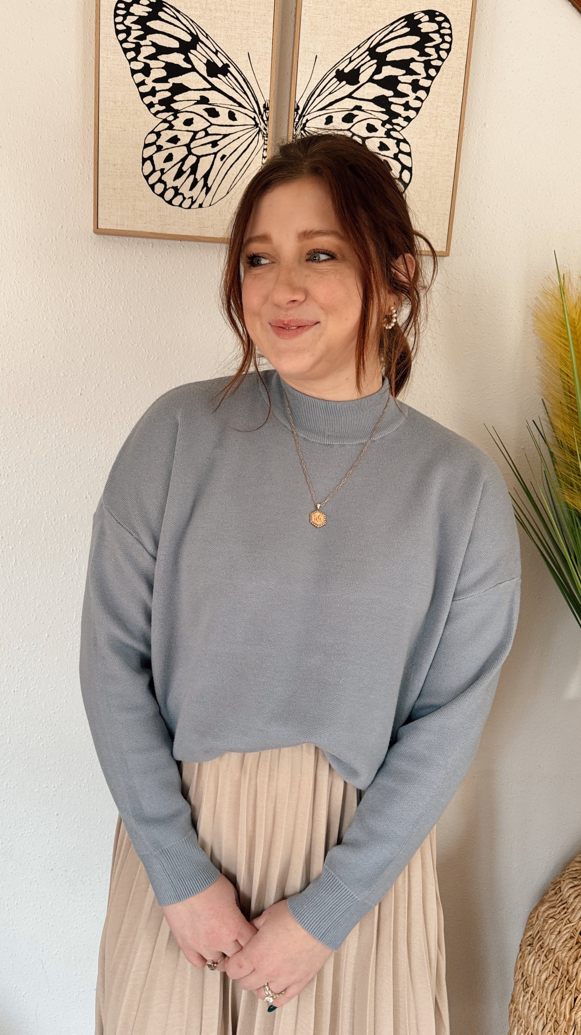 mock neck, relaxed fit, I am in a S/M.