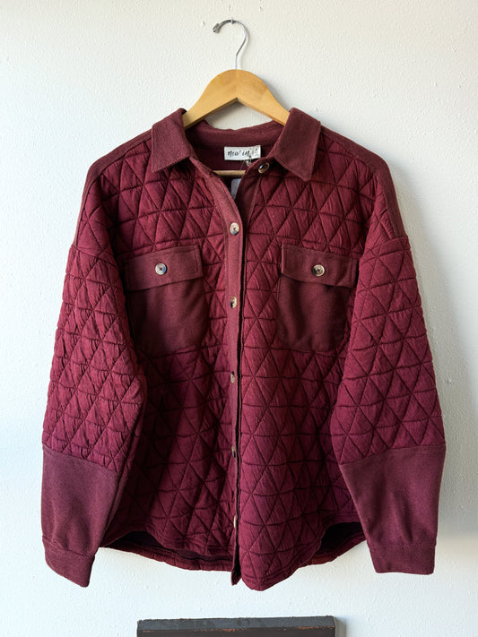 Oversized Quilted Cozy Shacket Jacket, Brick