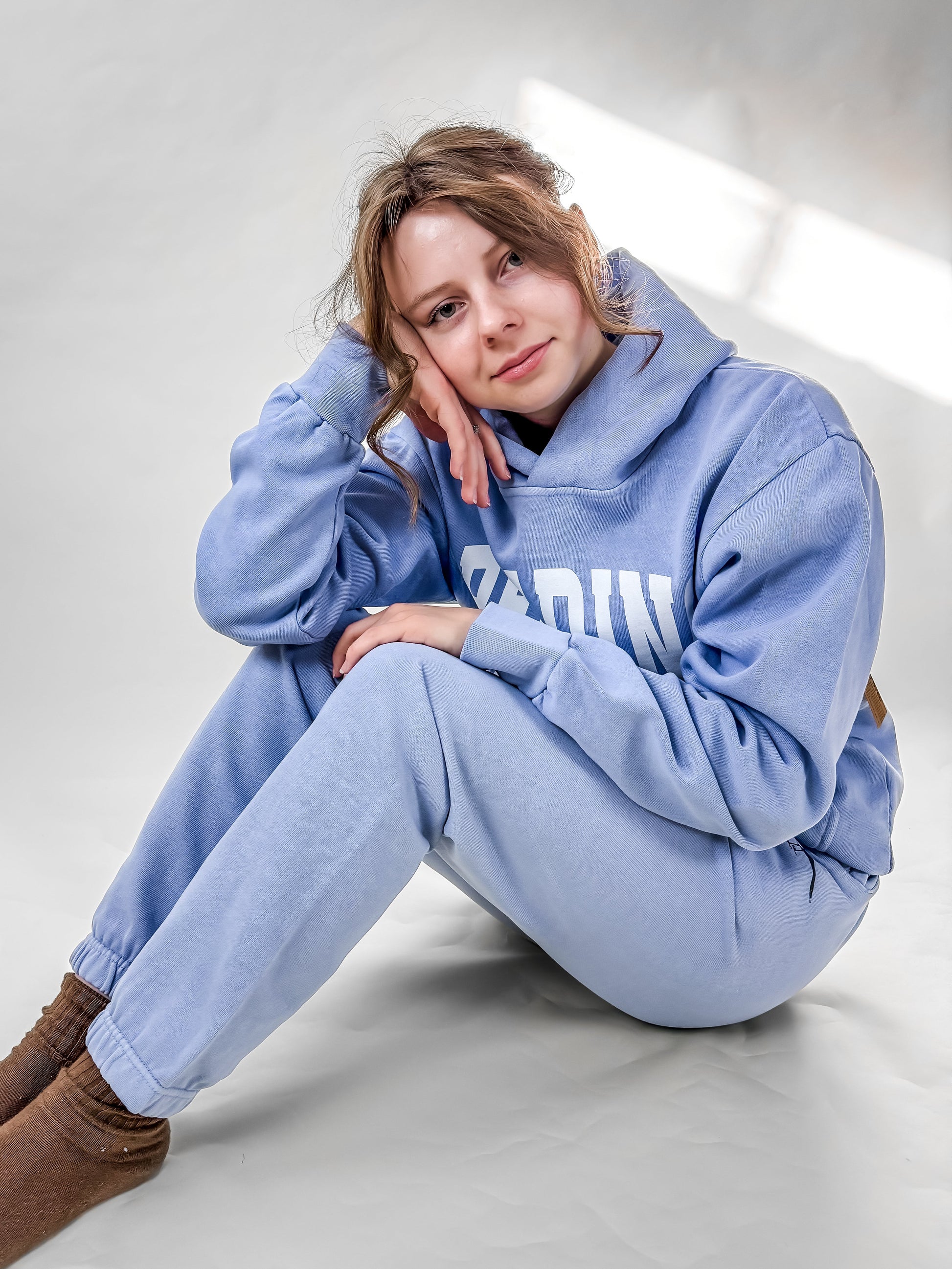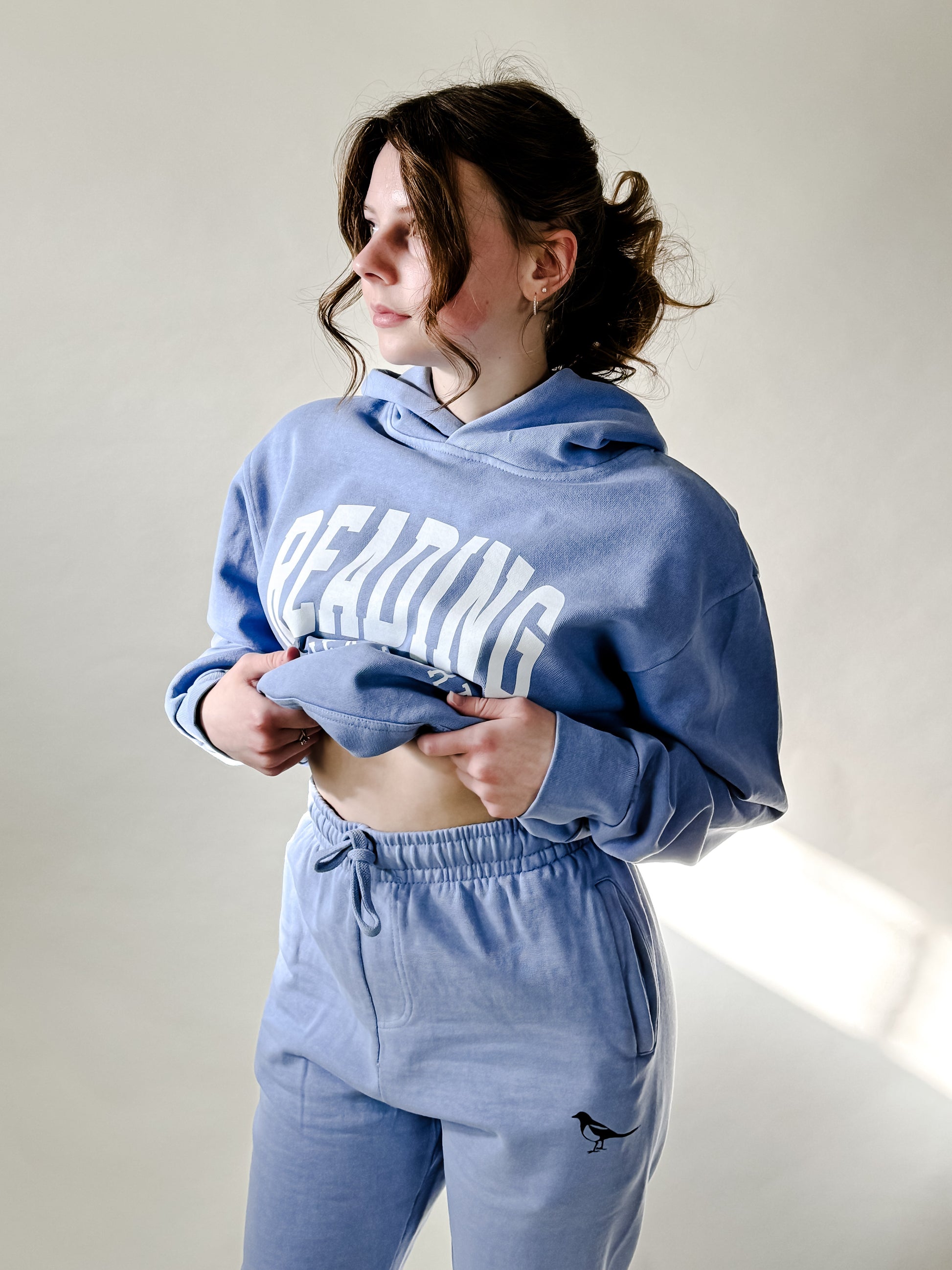 Stunning light blue/slightly light purple color- These joggers are now even better because the pockets have a dedicated zipper pocket within the main pocket! The hoodie is the perfect pair to lounge in these with. Enhanced with the MegPie Bird Logo!