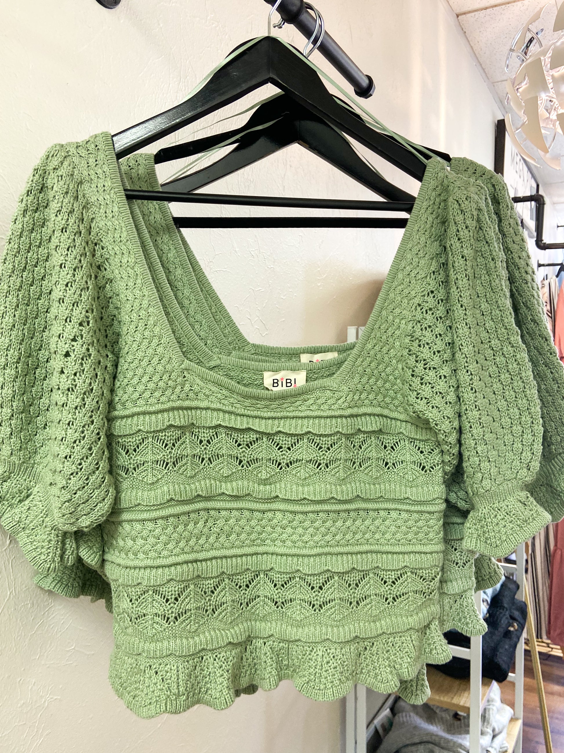 Generous sizing, if you have shorter shoulders just be aware if you have a little bust. Beautiful knit top! Small is modeled here and I do tend to have shoulder strap issues from time to time and this one did want to slip on me. I clearly wore the wrong style bra for this top- tee bras aren't the best fit lol! strapless or not full coverage would work for this top! :)
