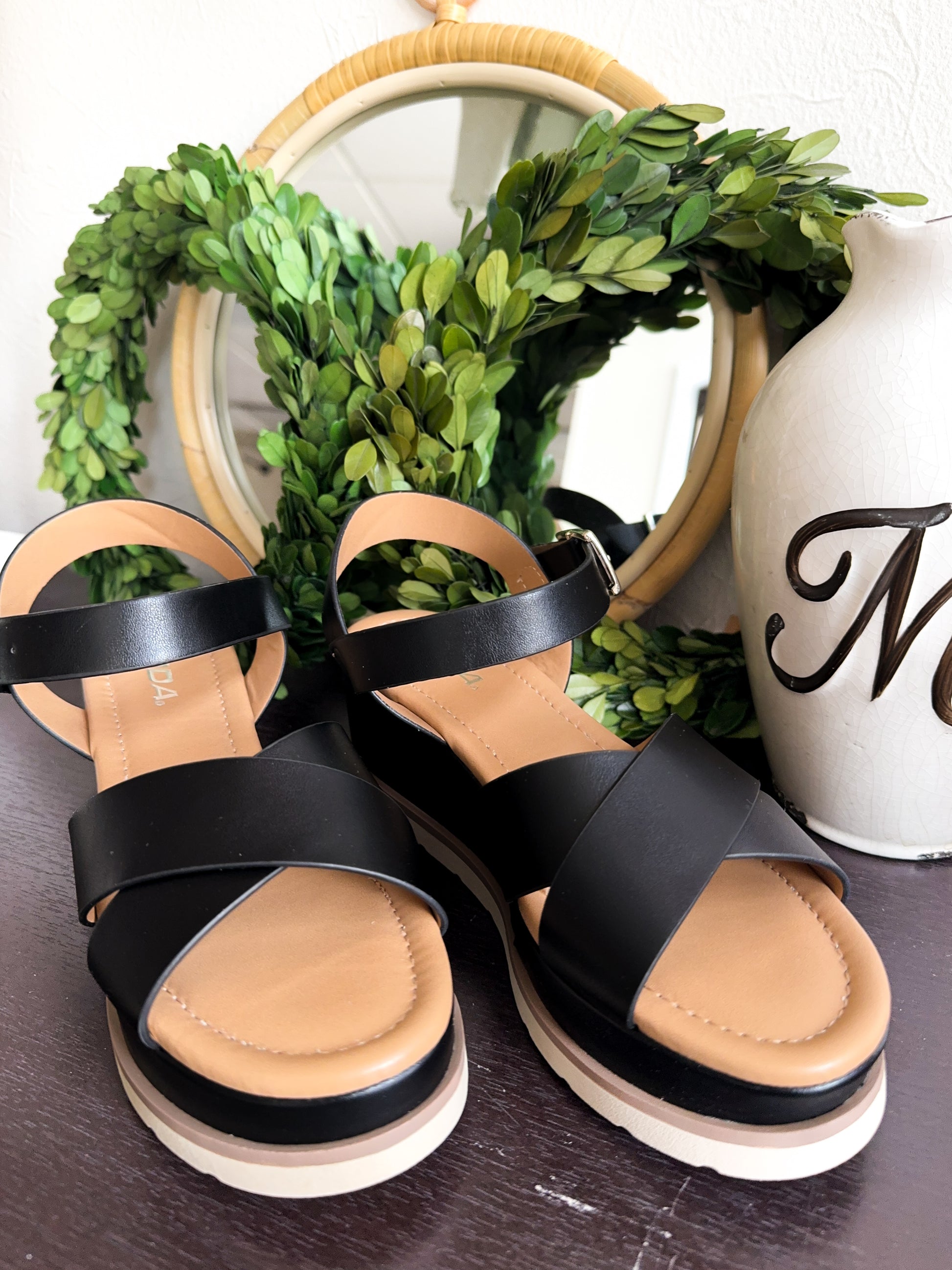 True to size! If your foot is wider it is totally safe to go up half a size. My true size is 6.5 and wearing the 7.5 - forgiving. I feel a 7 would be perfect for me but definitely a forgiving shoe with the adjustable strap!